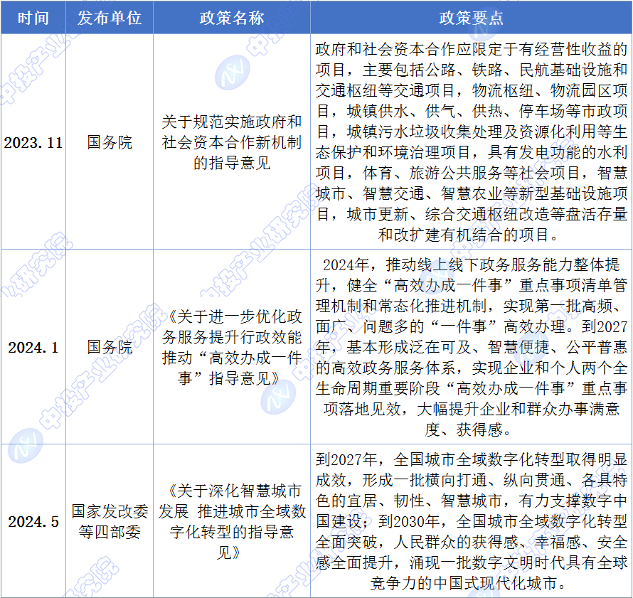 政策支持方面,2023年11月27日,由浪潮新基建参与起草的国家标准《智慧城市 城市智能服务体系构建指南》(gb/t43442-2023)正式发布,将于2024年6月1日正式实施。目前,国际、国内关于城市级智能服务构建的标准尚处空白,该标准是我国首项面向城市智能服务体系构建的国家标准,为全国各地新型智慧城市服务体系的建设提供指引。2024年5月20日,国家发改委等四部委联合印发《关于深化智慧城市发展 推进城市全域数字化转型的指导意见》,提出:到2027年,全国城市全域数字化转型取得明显成效,形成一批横向打通、纵向贯通、各具特色的宜居、韧性、智慧城市,有力支撑数字中国建设;到2030年,全国城市全域数字化转型全面突破,人民群众的获得感、幸福感、安全感全面提升,涌现一批数字文明时代具有全球竞争力的中国式现代化城市。
