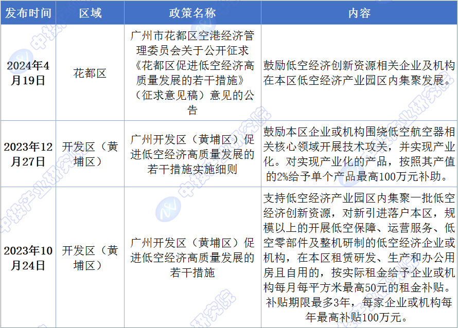 图表:广州市各区低空经济支持政策要点