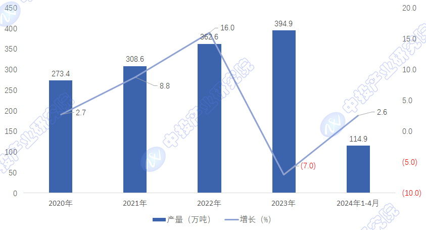 中投产业研究院发布的《2024-2028年中国原料药产业深度调研及投资前景预测报告》指出,2024年4月我国化学药品原药产量当期值为30.2万吨,同比增长6%;2024年1-4月我国化学药品原药产量累计值为114.9万吨,较上一年同比增长2.6%。