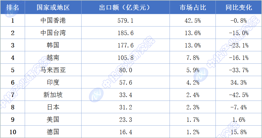 图表:2023年我国集成电路出口主要国家