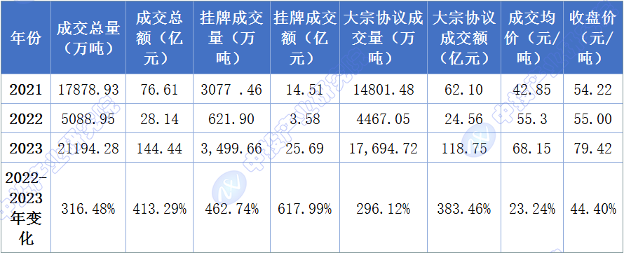 图表:202-2023全国碳市场年度成交情况