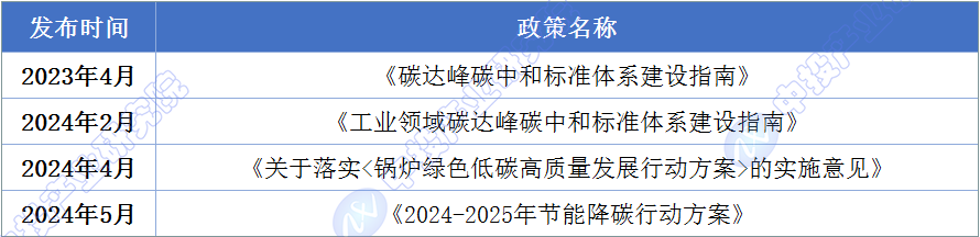 2024年2月4日,工业和信息化部办公厅印发《工业领域碳达峰碳中和标准体系建设指南》的通知,通知指出,加强相关标准化技术组织建设,强化产业链上中下游标准之间的有效衔接,国家标准、行业标准和团体标准之间的协调配套。引导行业内的龙头企业、科研院所、社会团体、检测认证机构、行业低碳标准化技术组织、地方工业和信息化主管部门等积极参与标准化工作,鼓励企业制定严于国家标准和行业标准的企业标准,推动企业加快实现低碳转型。2024年4月,市场监管总局发布《关于落实<锅炉绿色低碳高质量发展行动方案>的实施意见》,加快新建锅炉绿色低碳转型,推动存量锅炉更新改造,持续提高锅炉运行管理水平,不断完善锅炉安全、节能、环保三位一体监管体系。