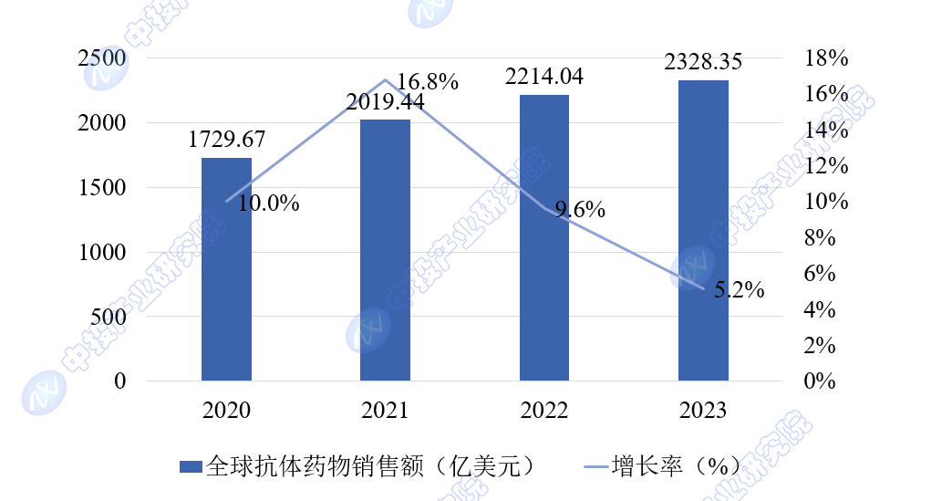 2023年全球抗体药物市场规模达到2328亿美元,Keytruda销售额250.11亿美元登顶,加上Humira、Dupixent、Stelara、Opdivo共计5款抗体药销售额突破百亿美元。11款抗体药物销售额超过50亿美元,35款抗体药物销售额超过20亿美元,54款抗体药物销售额超过10亿美元。