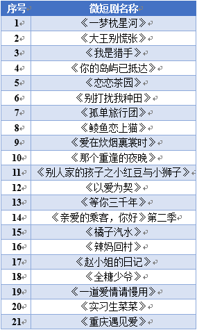 4、推广效果:2024年4月23日,国家广电总局网络视听节目管理司发布“跟着微短剧去旅行”创作计划第二批推荐目录,共有21部导向积极、契合主题、创意新鲜、形式新潮、内容新颖的微短剧入选。这些作品内容新颖、主题丰富,涉及非遗、乡村振兴、校园青春、田园生活、美食疗愈等多个领域。