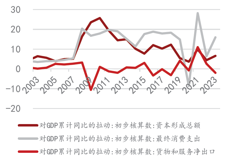 图表:截至2023年我国投资、消费、净出口对GDP增长的拉动
