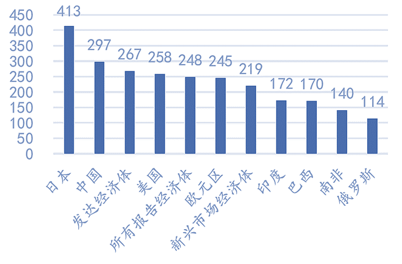 图表:2022年末主要经济体和地区非金融部门杠杆率
