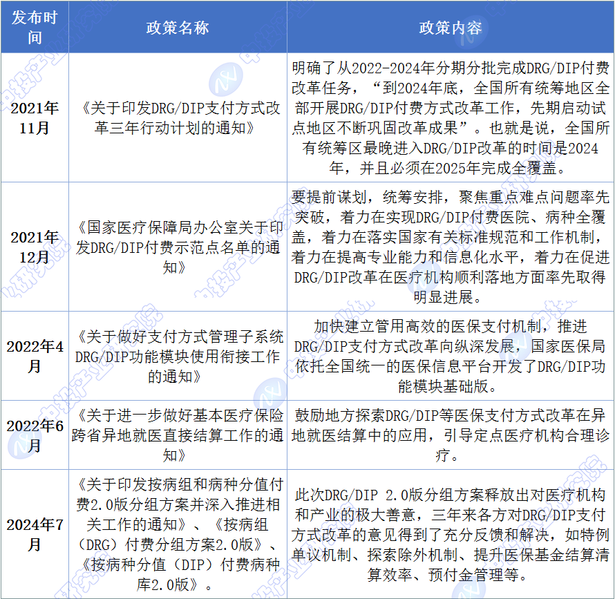 图表:2021-2024年中国医保支付方式DRG/DIP相关政策
