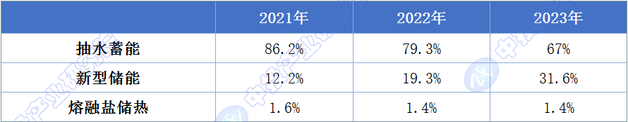 图表:2021-2023年全球新型储能市场累计装机结构变化