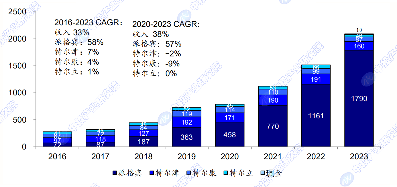特宝生物收入主要包括5款重组蛋白药物。目前公司上市产品:特尔立(rhGM-CSF,1997)、特尔津(rhG-CSF,1999)、特尔康(rhIL-11,2005)、派格宾(PEG IFN-α-2b,2016)、珮金(PEG-rhG-CSF,2023)。其中前三款短效重组蛋白产品上市时间较早,近年来销售额趋于稳定增长。