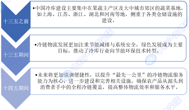 中投产业研究院发布的《2024-2028年中国冷库行业深度调研及投资前景预测报告》表示,中国冷库行业政策的演变主要分为三个阶段,分别为“十三五之前”、“十三五期间”、“十四五期间”,冷库相关政策具体的发布历程如下: