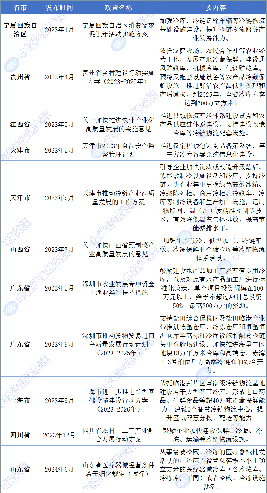 中投产业研究院发布的《2024-2028年中国冷库行业深度调研及投资前景预测报告》指出:积极响应国家政策规划,各省市对冷库行业的发展做出了具体规划,支持当地冷库行业稳定发展,比如山西省发布的《关于加快山西省预制菜产业高质量发展的意见》提出加强生产预冷、低温加工、冷链配送、冷冻保鲜和仓储冷库等冷链物流体系建设。