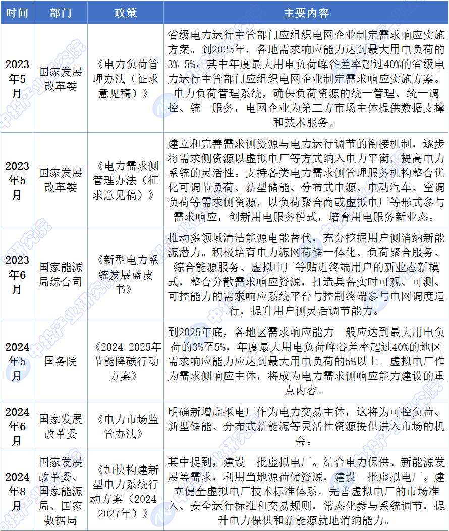 图表:2023-2024年中国虚拟电厂行业国家层面政策汇总