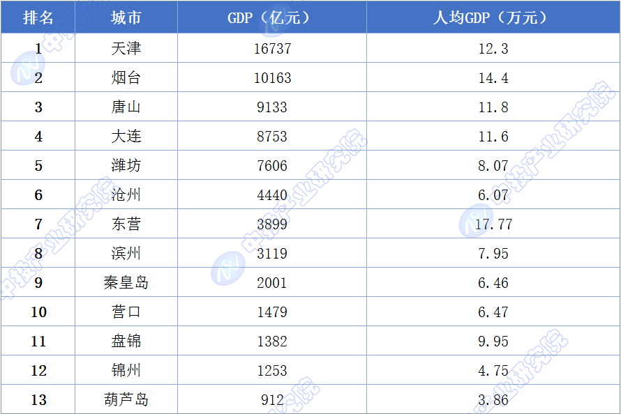 环渤海地区位于我国华北、东北、西北三大区域结合部,包括北京市、天津市、河北省、辽宁省、山东省和山西省、内蒙古自治区,面积186万平方公里。环渤海地区幅员广阔、连接海陆,区位条件优越、自然资源丰富、产业基础雄厚,是我国最具综合优势和发展潜力的经济增长极之一,在对外开放和现代化建设全局中具有重要战略地位。2023年,在环渤海地区13市中,天津以16737亿元的GDP总量稳坐榜首,烟台、唐山紧随其后,分别达到了10163亿元和9133亿元。大连、潍坊等城市也表现不俗,GDP总量均超过了7000亿元。而葫芦岛则以912亿元的GDP总量排在最后。