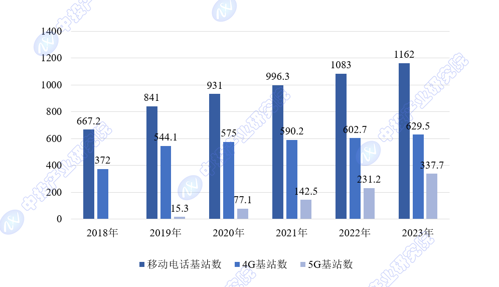 图表:2018-2023年移动电话基站发展情况