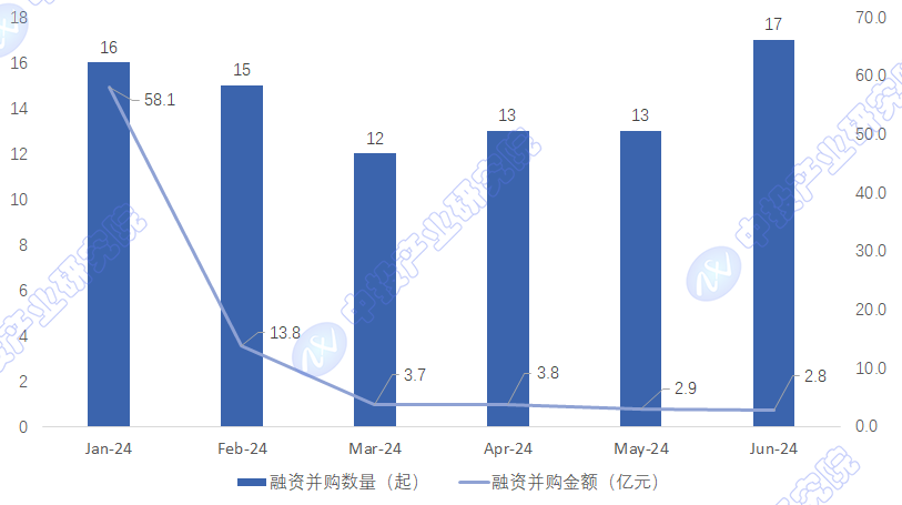 图表:2024年全球VR/AR行业月度融资并购规模情况