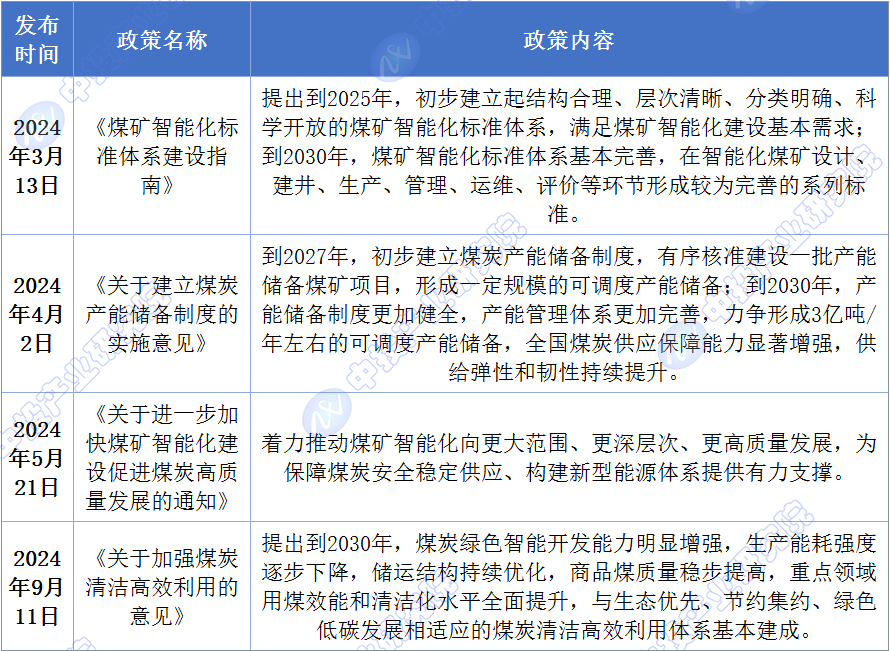 图表:2024年中国煤炭工业相关政策汇总