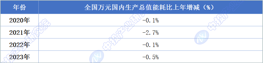 图表:2020-2023年全国万元国内生产总值能耗