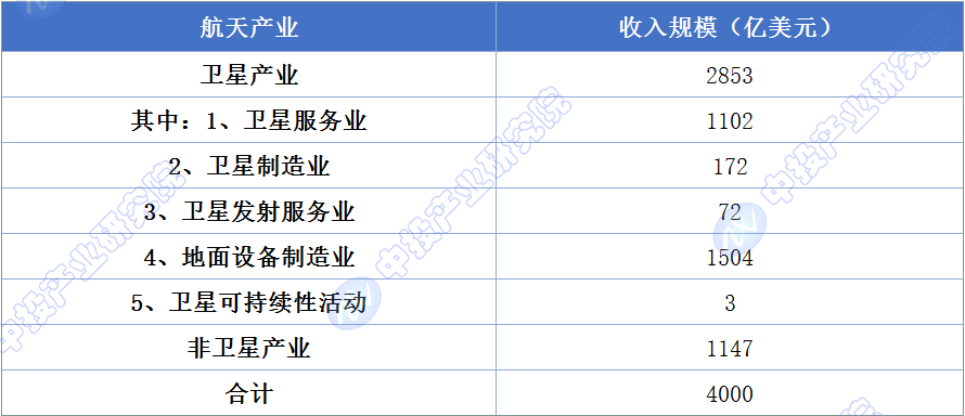 图表:2023年全球航天产业、卫星产业收入概况