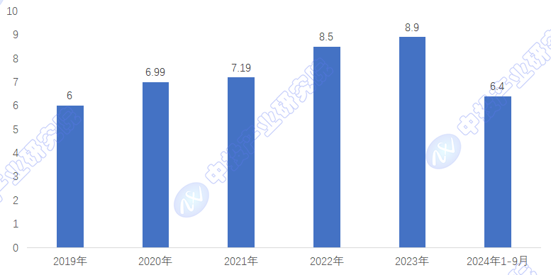 图表:2019-2024年中国冷链物流总收入变化情况
