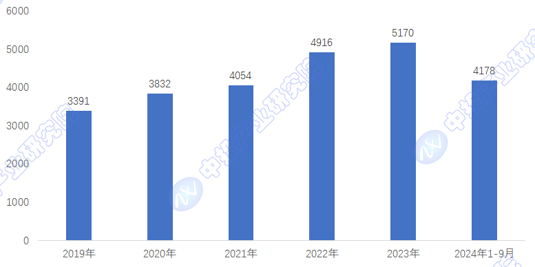 图表:2019-2024年中国冷链物流总需求变化情况