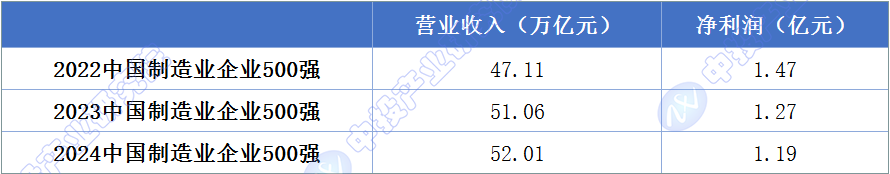 图表:2022-2024中国制造业企业500强实现营业收入及净利润