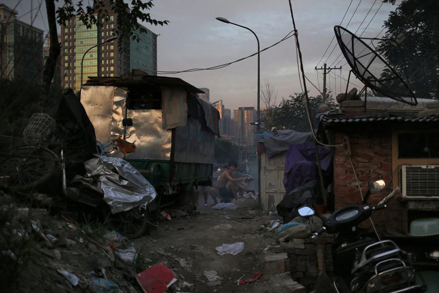 据《人民日报》报道,北京市政府表示,将把棚户区改造作为重大民生工程、重大发展工程,力争5年完成四环内棚户区改造任务,预计投入逾5000亿元。图为2013年7月29日,北京,距离CBD几百米的一片棚户区